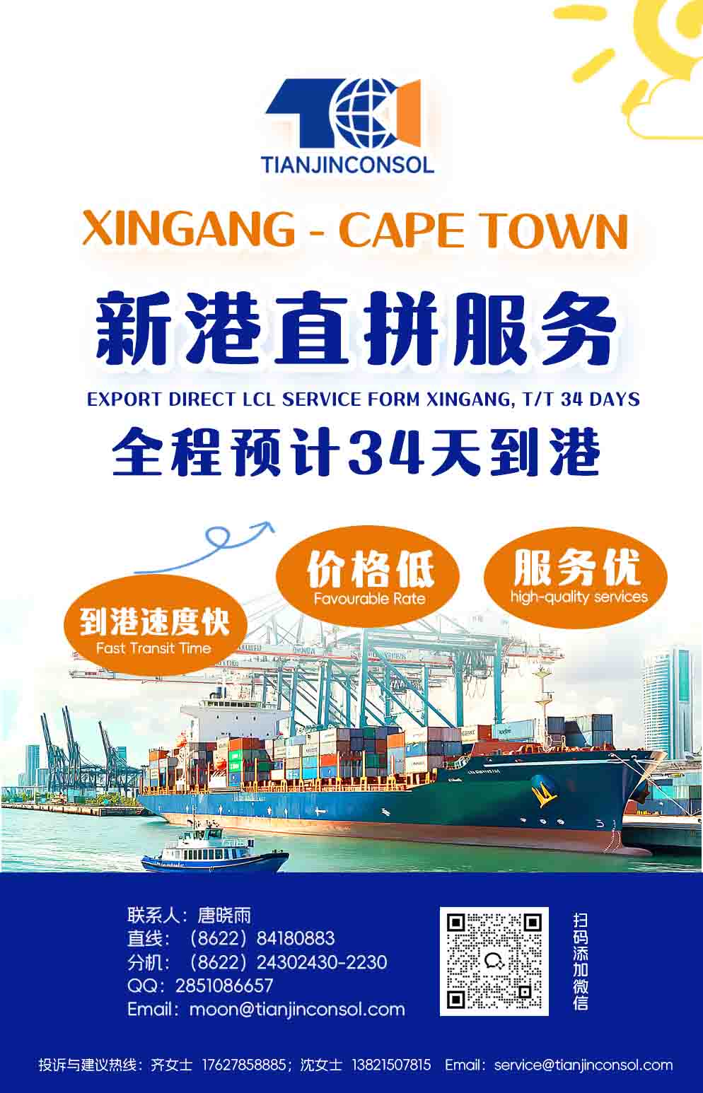 XINGANG→CAPE TOWN直拼服務 到港快 運價優(yōu)