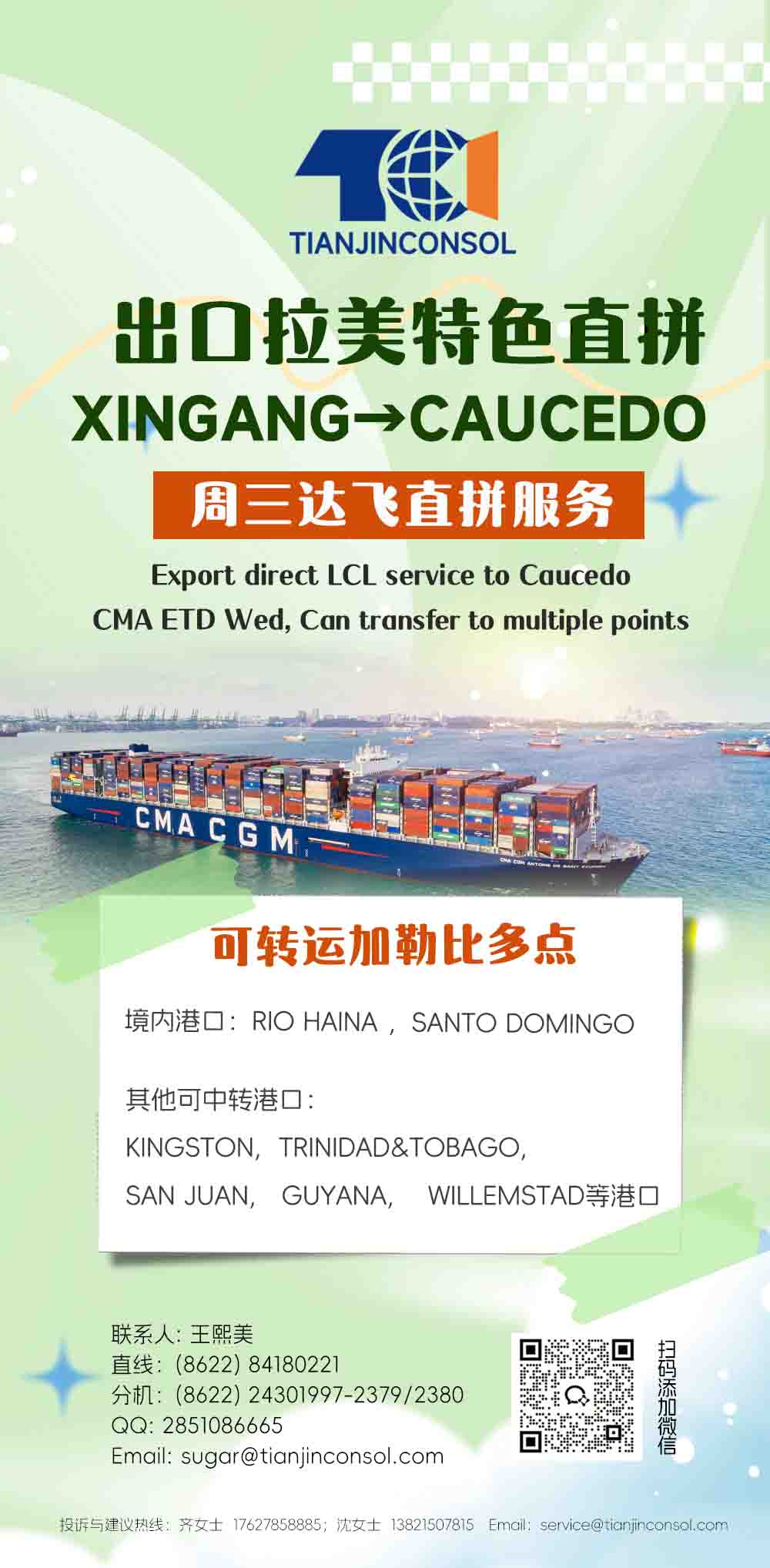 XINGANG→CAUCEDO穩(wěn)定直拼 加勒比多港可達(dá)