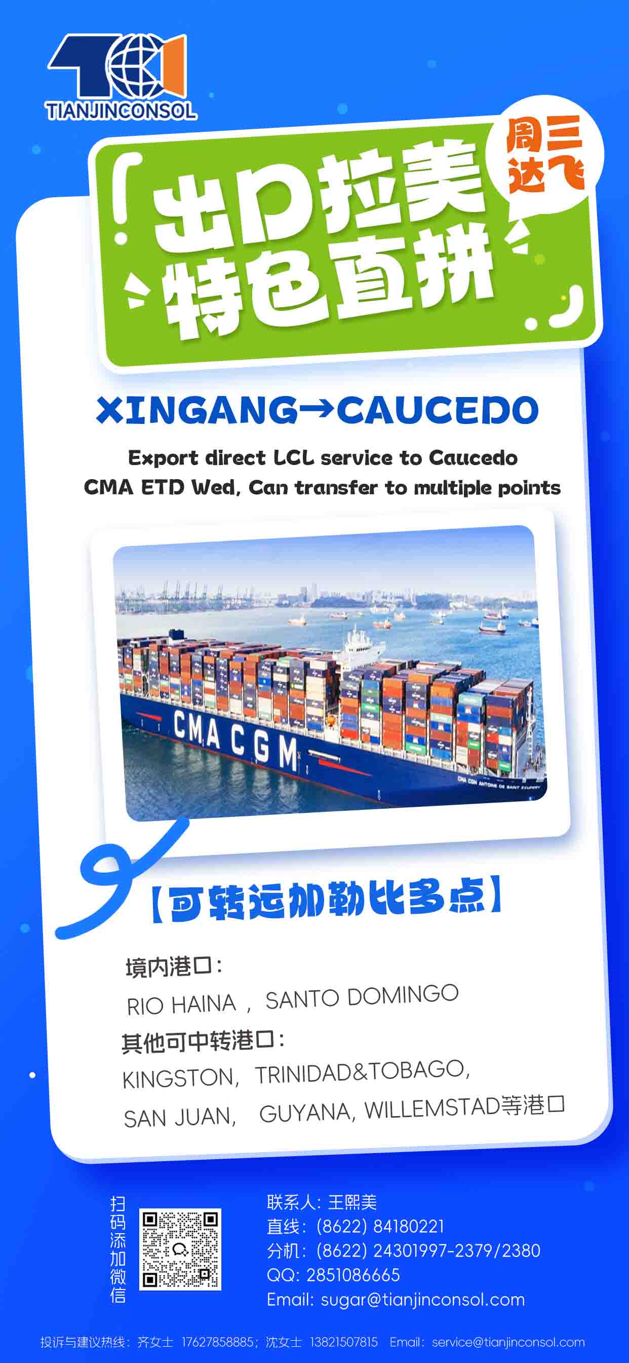 XINGANG→CAUCEDO加勒比多點(diǎn)轉(zhuǎn)運(yùn)超便捷