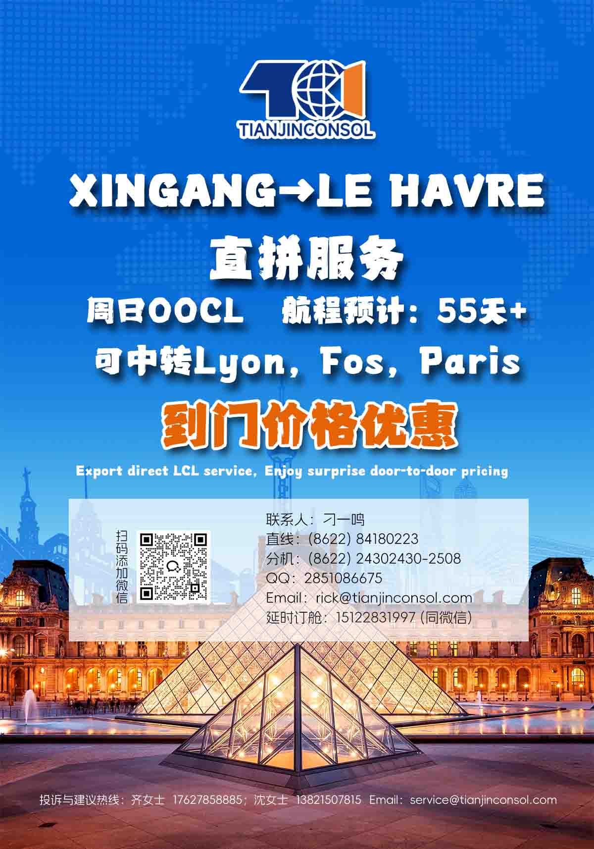 XINGANG→LE HAVRE穩(wěn)定直拼 到門(mén)價(jià)格優(yōu)惠